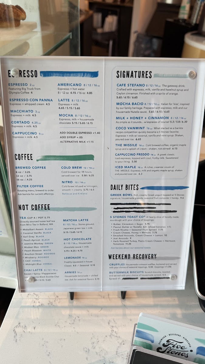 Introducing the Menu of 5 Stones Coffee Co Bellevue